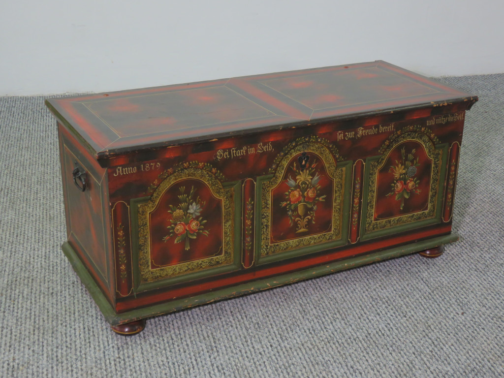 #2627 Antique Pine Blanket Chest from 1879 – Original Hand-Painted Finish