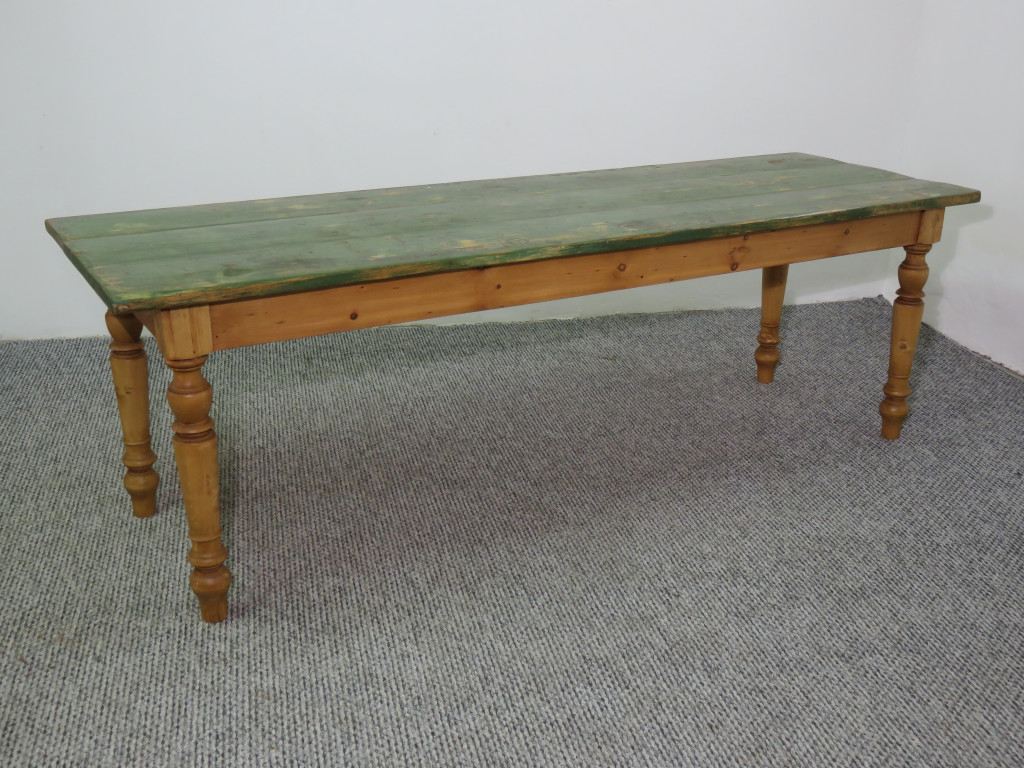 #2646 Antique Pine Dining Table - Green Top - Finished with wax