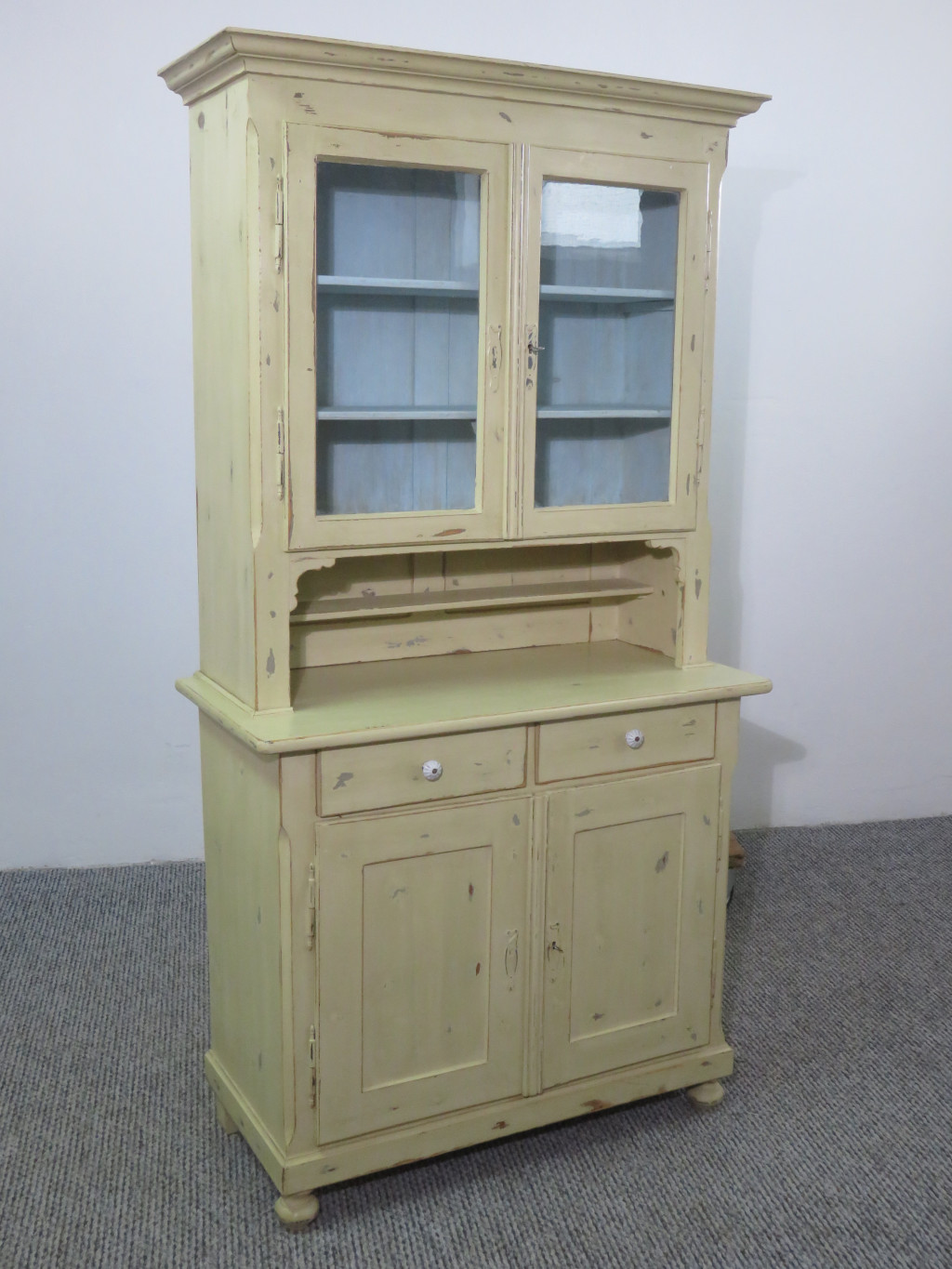 #2640 Antique Pine Kitchen Dresser Cabinet - Cream Painted Finish