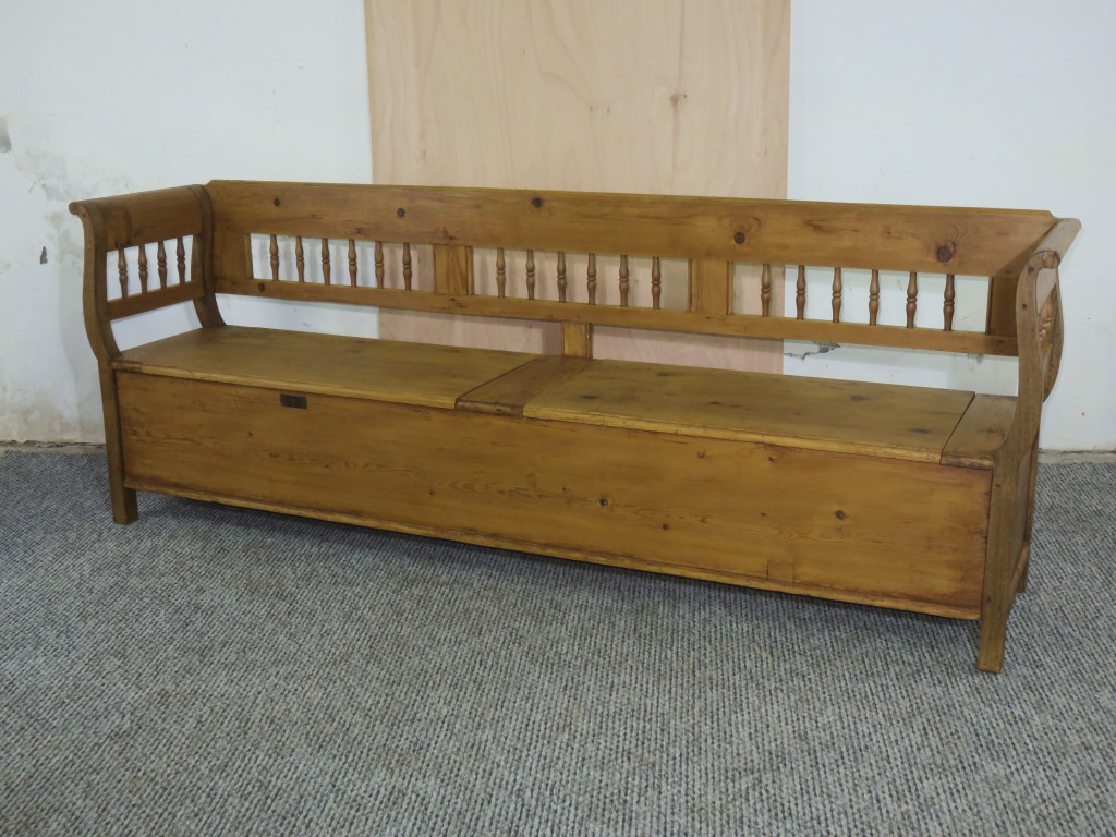 #2681 Antique pine long box bench - finished with wax