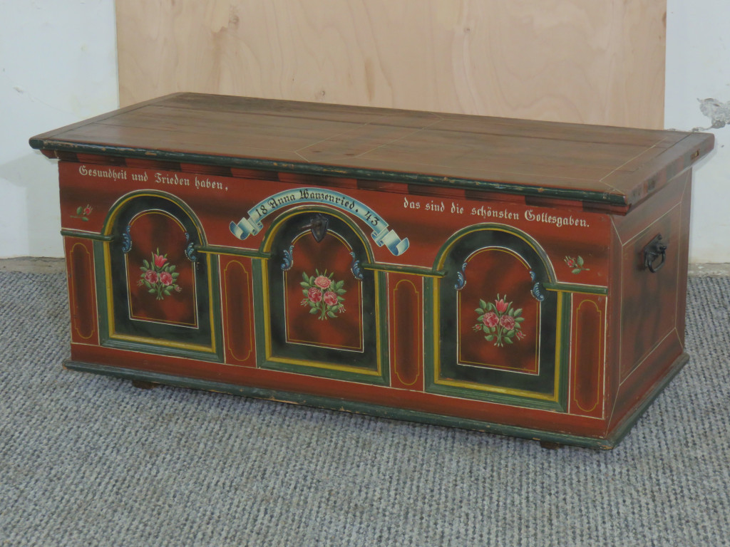 #2692 Antique swiss blanket chest, 1843 - with original hand-paint