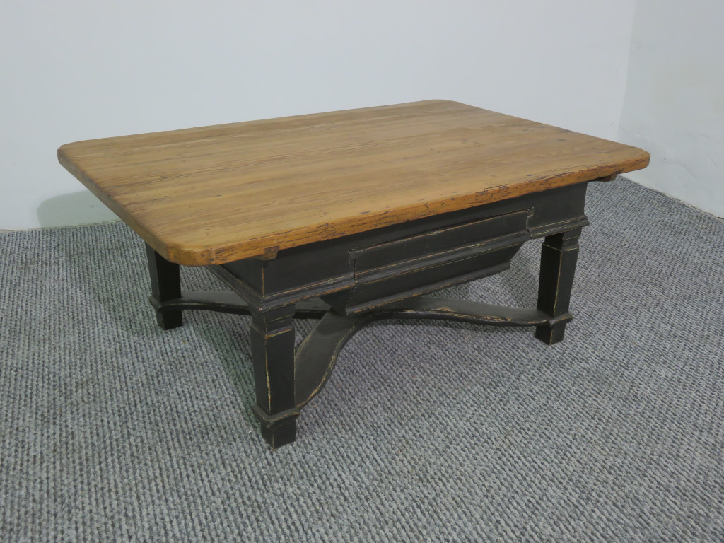 #2440 Antique Coffee Table with drawer (black base-waxed top)
