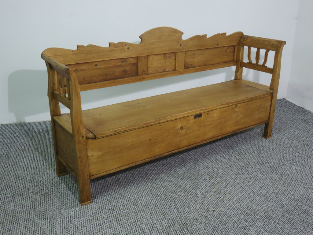 Antique Pine Box Bench #2441, finished with wax