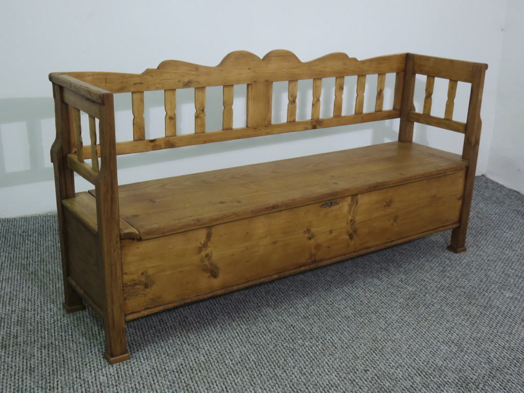Antique Pine Box Bench #2444, finished with wax