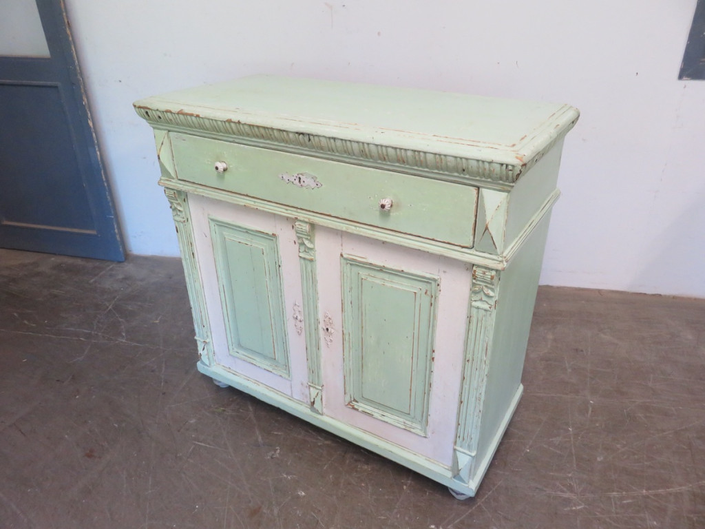 #1829 Antique Pine Dresser Base Cabinet (green-white)