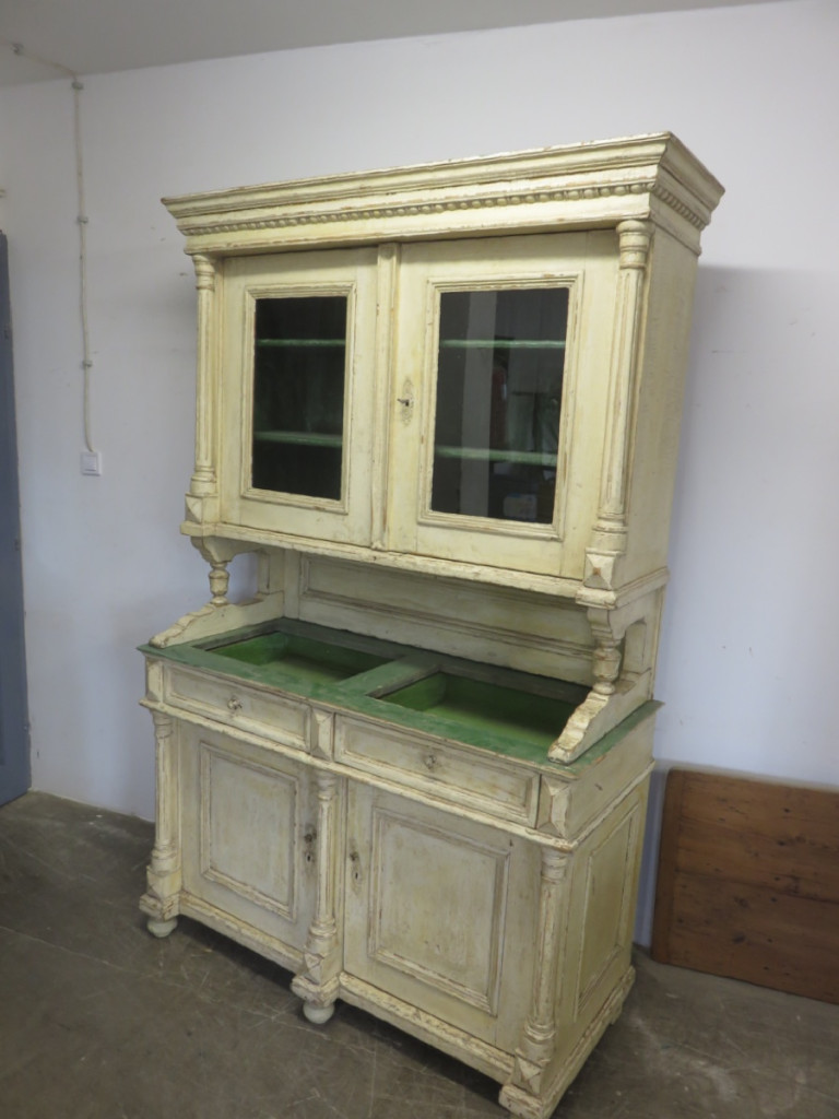 #2236 Antique Pine Kitchen Dresser (cream-green)