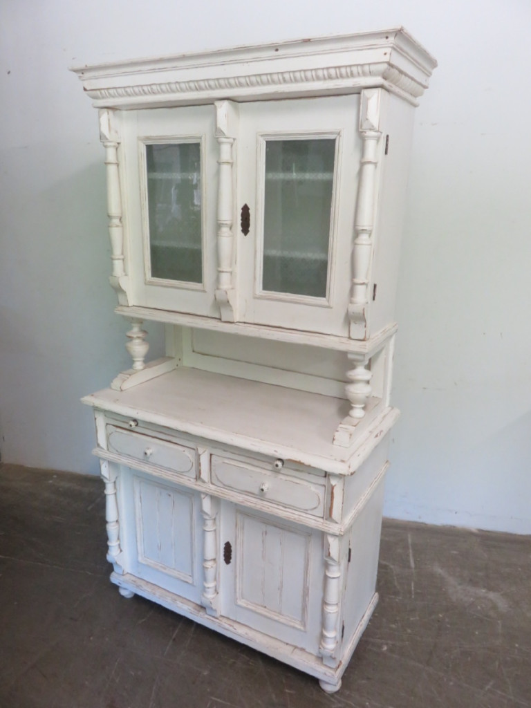 Antique Pine Kitchen Dresser with Glass (white)