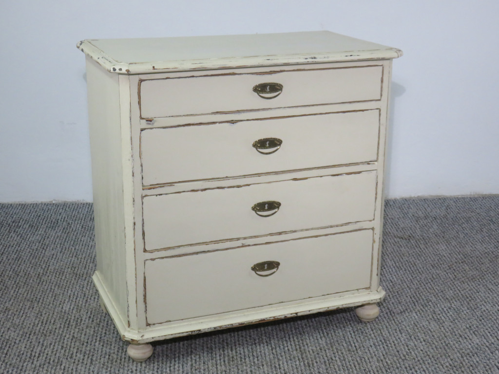 #2494 Antique Pine Painted Cream Chest of Four Drawers