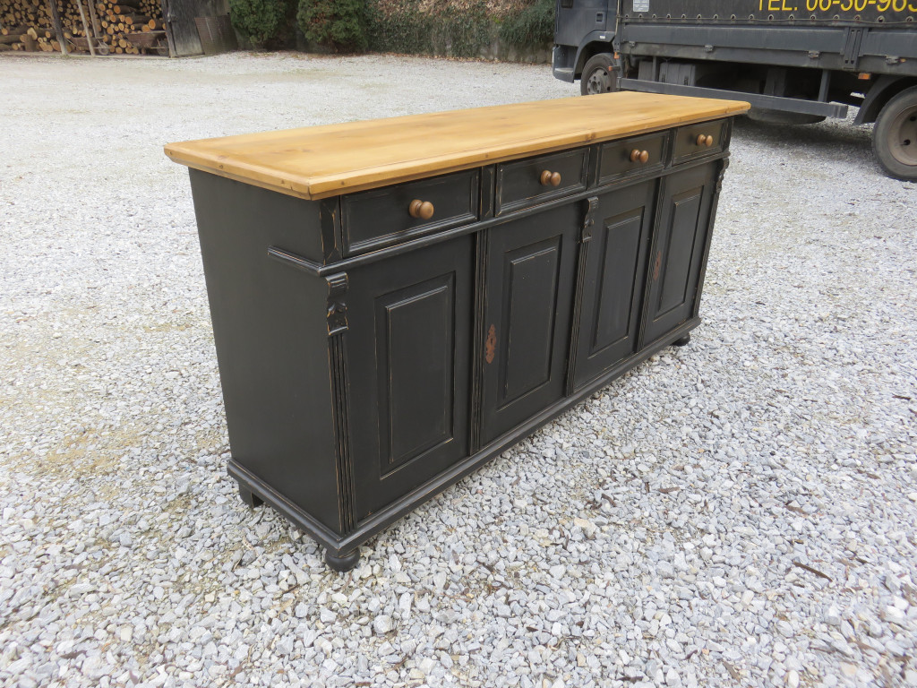 Pine Server with Four Doors and Four Drawers (Black Base- Waxed Top)
