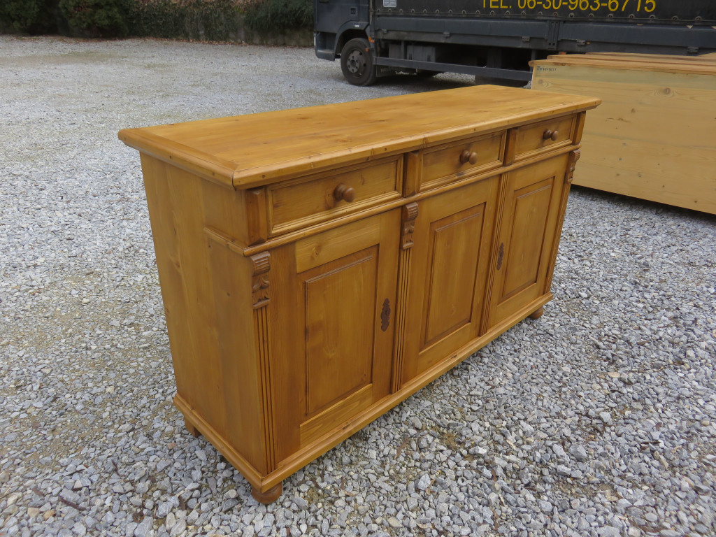 Pine Server with Three Doors and Three Drawers (Natural Waxed Base and Top)